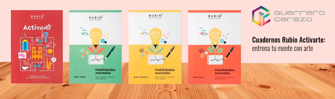 En Guerrero Cerezo, disponemos de la gama completa de Cuadernos Rubio Activarte y Habilidades Mentales. Puedes encontrarlos fácilmente en nuestra tienda online o visitarnos en nuestro punto de venta en Puente Tocinos (Murcia).