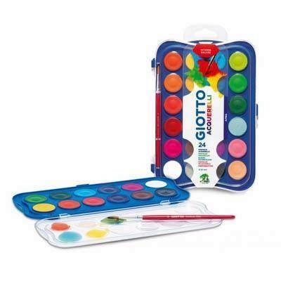 Las Acuarelas Giotto vienen con unas nuevas pastillas, disponibles en 2 medidas: 30 mm y 23 mm de diámetro, de colores luminosos, intensos y cubrientes. Su diseño, fórmula y estuche están mejorados para facilitar su uso. La pastilla evita la dispersión del agua. Los colores son más ricos en pigmentos y se mantienen mejor una vez secos. Disponibles en 36 colores. Los estuches de 12 y 24 pastillas incluyen un pincel sintético nº 3 y los estuches de 36 pastillas incluyen 2 pinceles (uno de punta plana y otro de punta redonda).