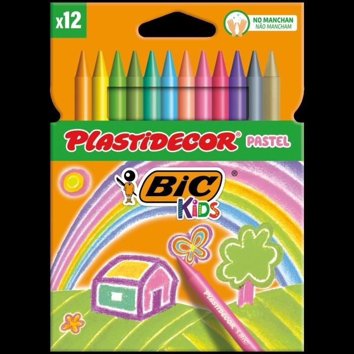 BIC Kids Plastidecor Pastel Ceras para Colorear Colores Surtidos, Blíster de 12 Unidades