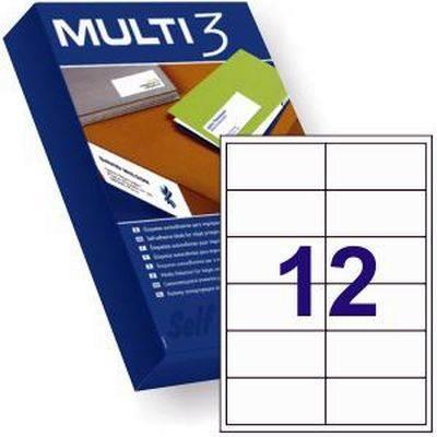 Etiquetas blancas de alta calidad con un adhesivo resistente. Se presentan en cajas de 500 hojas DIN-A4, con 12 etiquetas por hoja, lo que suma un total de 6000 etiquetas. Cada etiqueta tiene un tamaño de 97x42,4 mm. Son compatibles con impresoras láser, de tinta y fotocopiadoras, y pueden utilizarse para etiquetar envíos, correspondencia postal, embalaje y productos. Además, son ecológicas y están libres de cloro elemental