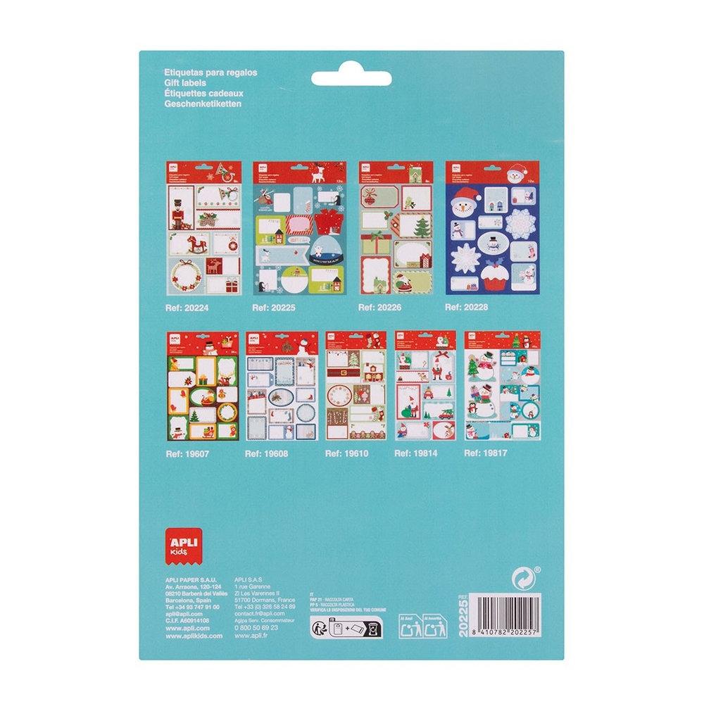 APLI 20225 Etiquetas regalo Navidad Bola de Nieve, una hoja con 13 etiquetas adhesivas en distintos tamaños y diseños inspirados en bolas de nieve navideñas: muñecos de nieve, casas nevadas, abetos y escenas invernales llenas de magia. Adhesivo permanente, ideal para marcar regalos, escribir mensajes personalizados y decorar paquetes, tarjetas y sobres con un toque tierno y festivo. Un accesorio práctico y encantador para envolver regalos con originalidad y espíritu navideño. Medidas del producto: 180 x 265 mm.