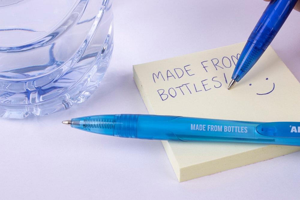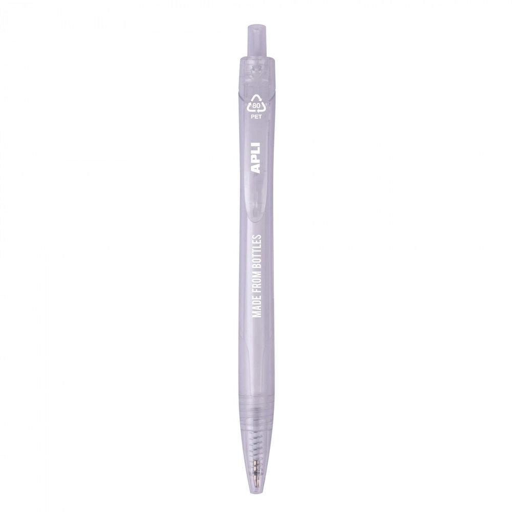 Expositor de cartón con 36 bolígrafos fabricados a partir del plástico de botellas recicladas. Punta de 1 mm y tinta base aceite. Cada expositor contiene 36 bolígrafos de 3 colores distintos: blanco, azul medio y azul marino (12 por color). Los bolígrafos están compuestos al 80% de PET reciclado. El 20% restante son otros componentes como tinta, mina, muelle, etc. El problema con el plástico es un problema global que nos atañe a todos. Los productos fabricados a partir de este material, en muchas ocasiones, tienen una vida útil muy corta, pero tardan cientos de años en degradarse, lo que implica la contaminación del medio ambiente. En APLI nos unimos a la lucha contra el exceso de plástico en los océanos, por ello queremos aportar nuestro gratino de arena fabricando estos bolígrafos a partir de botellas de plástico PET (RPET).