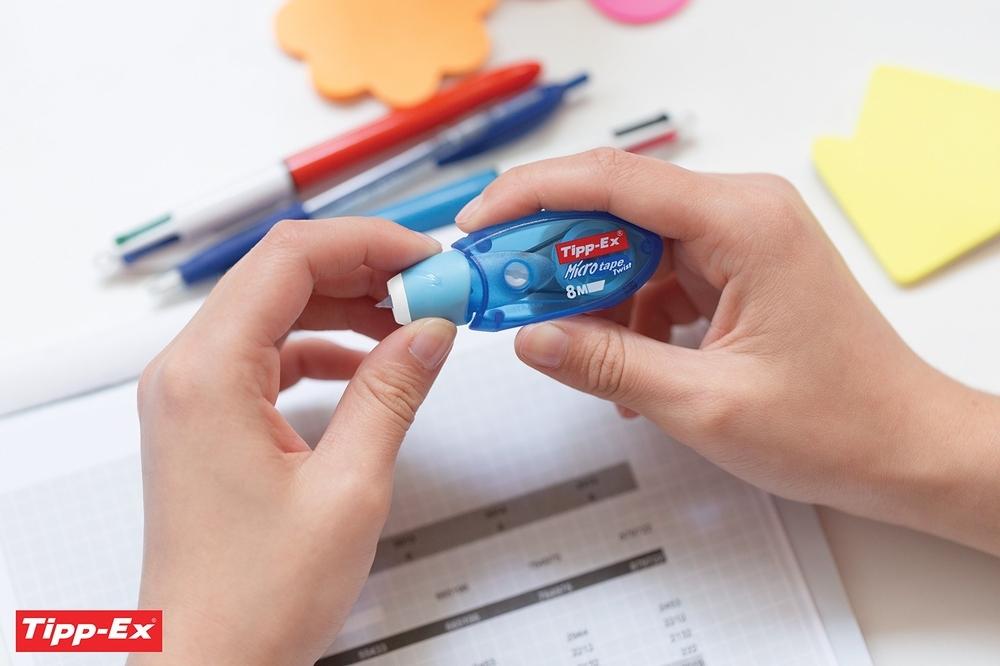 Tipp-Ex Micro Tape Twist es una cinta correctora bastante ingeniosa: el cabezal giratorio patentado protege la punta de posibles daños