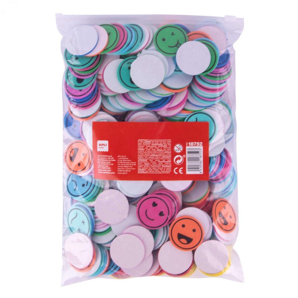 Cada emoción tiene un color para ayudar a su identificación, incluye 50 u. por color. Cada pack contiene 500 formas de Ø 3,5cm.