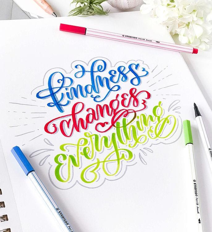 Con el STABILO Pen 68 brush puedes controlar los trazos ascendentes y descendentes de forma precisa y así dibujar bonitas letras que están tan de moda actualmente.