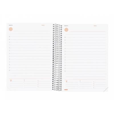 Agenda de espiral perpetua para organizarte cuando quieras. Ideal para planificar períodos del año específicos de forma libre. Con goma elástica. Con tapa ligera de polipropileno que se puede personalizar: crea y cambia la portada de la agenda a tu gusto. Puedes insertar tu propio dibujo, fotografías, papeles que no puedes perder, etc. o bien también te puedes descargar la portada que desees del apartado DESCARGAS de la web Finocam. Equipada con adhesivos temáticos orientados a la organización personal. Esquinas microperforadas para localizar rápidamente el día/semana en curso. El diseño interior es limpio y fácil, con espacio suficiente para organizar tus proyectos, tareas y compromisos. Una agenda diseñada para utilizar solo cuando la necesites: estrena agenda el día que quieras, discontinúa su uso sin dejar hojas en blanco, y adáptatela a tus necesidades de organización.