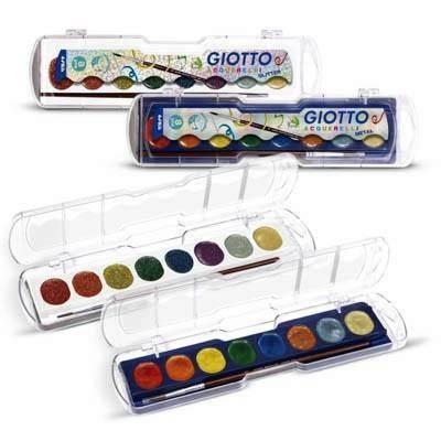 Pastillas de acuarela con acabados glitter (efecto purpurina) y metal (efecto metalizado). Con solo una pequeña aportanción de agua se diluyen para crear una excelente solución de pintura. Se pueden lavar fácilmente de la piel con agua y jabón y de la mayoría de tejidos con un ciclo normal de lavadora. Incluye 8 pastillas y un pincel con punta redonda Giotto serie 400.