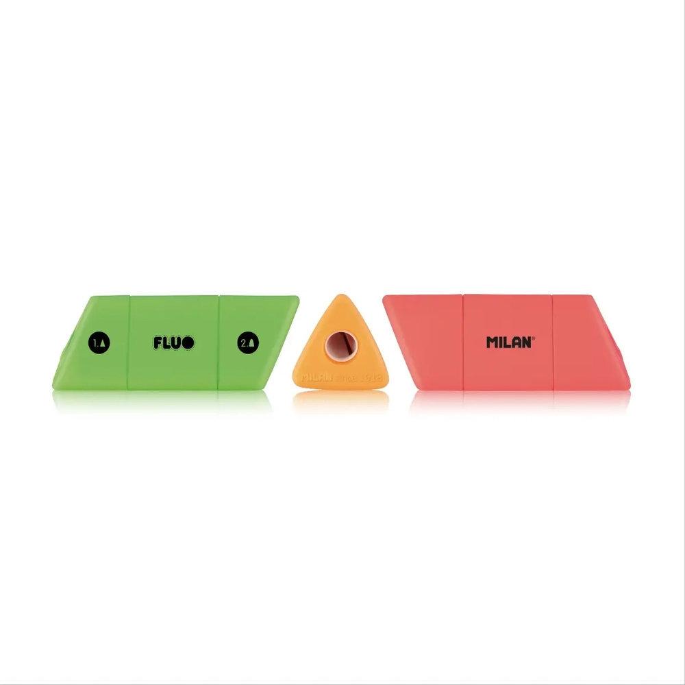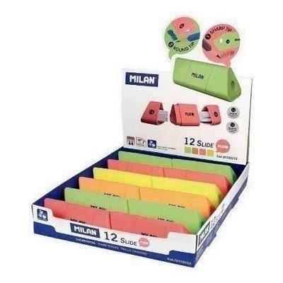 El sacapuntas MILAN 20153212, modelo SLIDE, ofrece dos afiladores en un mismo cuerpo: uno estándar y otro MAXI, permitiendo afilar lápices de distintos diámetros con total comodidad. Su depósito integrado facilita la recogida de virutas, manteniendo el espacio de trabajo limpio y ordenado. Dispone de una cuchilla de acero al carbono afilada y resistente, adecuada para todo tipo de lápices. Además, incorpora cuchilla de seguridad, un sistema que evita que la hoja pueda separarse del cuerpo del sacapuntas, lo que lo convierte en una opción ideal para uso escolar. El diseño SLIDE, creado por el departamento de I+D de MILAN, destaca por su ergonomía, funcionalidad y estética moderna, convirtiéndolo en un accesorio práctico y atractivo para el día a día.