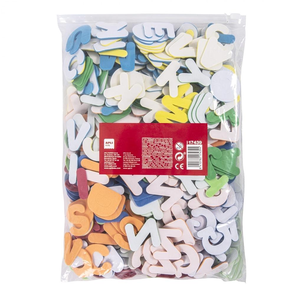 Letras de goma EVA adhesiva en colores surtidos: amarillo, naranja, rojo, azul claro, azul, verde claro y verde. Cada forma tiene una altura aproximada de 35 x 2 mm de grosor. Cada pack contiene 500 formas. Formato MAXI, ideal para escuelas. Ideales para utilizar tanto en casa como en la escuela en manualidades, álbumes, tarjetas de felicitación, etc. Excelente herramienta para que los más pequeños empiecen a familiarizarse con las letras con un material suave y seguro.