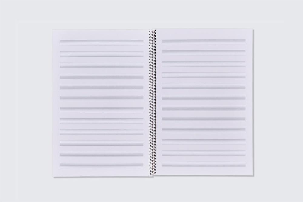 Páginas con 12 pentagramas de 10 mm con espiral continua de plástico. Contenido