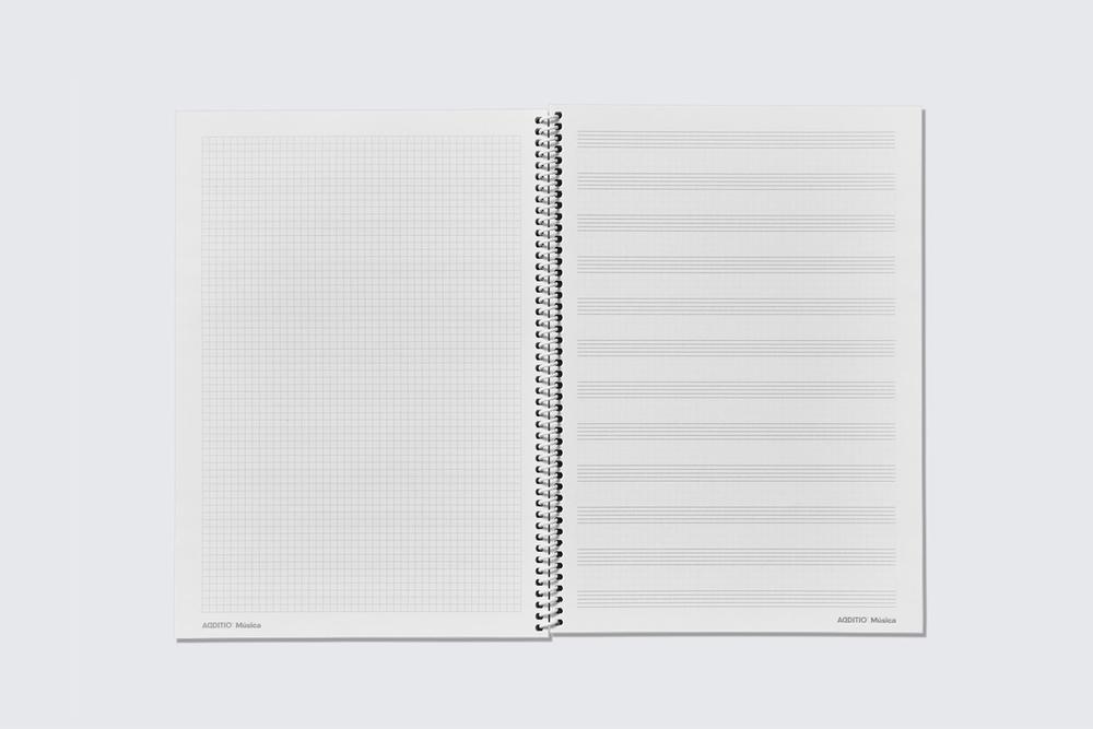 Páginas de 12 pentagramas y páginas para anotaciones. Con espiral continua de plástico. Contenido