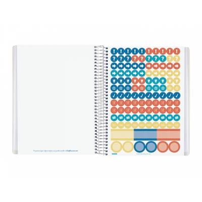 Planificador de clases 1 Día Página para organizar hasta 8 horas/materias y con espacio para anotaciones. Con esquinas microperforadas para localizar rápidamente el día/semana en curso. Concebido para adaptarse a cualquier especialidad del mundo educativo: profesores, maestros, coaches, tutores, educadores, etc. Dispone de apartados específicos para los docentes. Diseño actual y moderno tanto de la cubierta como de su interior. Con espiral simple metálica resistente, goma elástica y tapas de polipropileno que permiten la personalización de la portada. Podrás descargar las portadas que encontrarás en el apartado de Descargas de la web Finocam o diseñar la tuya propia e insertarla en las tapas. Asimismo, encontrarás otros descargables imprimibles: plantillas para listas, calendario del curso, planning mensual del curso, plantillas de checklist, hoja de recordatorios y otros.