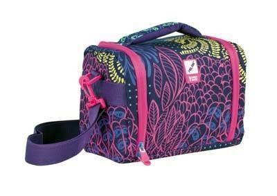Bolsa isotérmica porta alimentos de gran capacidad. Serie especial Fireflies, un estampado creado por diferentes formas de vegetación y hojas, que representa el entorno donde viven las luciérnagas. Los colores son tan brillantes como la luz de las luciérnagas: lila, fucsia, amarillo y verde, que destacan sobre una base lila oscuro. Cremalleras y detalles en color fucsia. Interior aislante térmico (frío/calor) para una mejor conservación de los alimentos. Apertura total para una mejor accesibilidad y limpieza. Correa regulable y extraíble, asa superior. Composición tejido: exterior de poliéster y forro interior isotérmico (P.E.V.A.). Medidas: 24,5 x 20 x 16 cm. Capacidad: 5 litros.