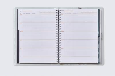Organización por pestañas para acceder rápidamente al contenido. Permite la evaluación continua de hasta 6 grupos de 40 alumnos. Registro de la programación. Agenda semana página para el seguimiento de las actividades del aula. Incluye 5 fundas transparentes. Tamaño 24 x 32 cm. Descarga la plantilla de listado de alumnos dentro del apartado de descargas o directamente en el botón de más abajo.