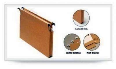 Paq.25 carpetas colgantes Gio visor superior lomo 30mm A4 kraft bicolor