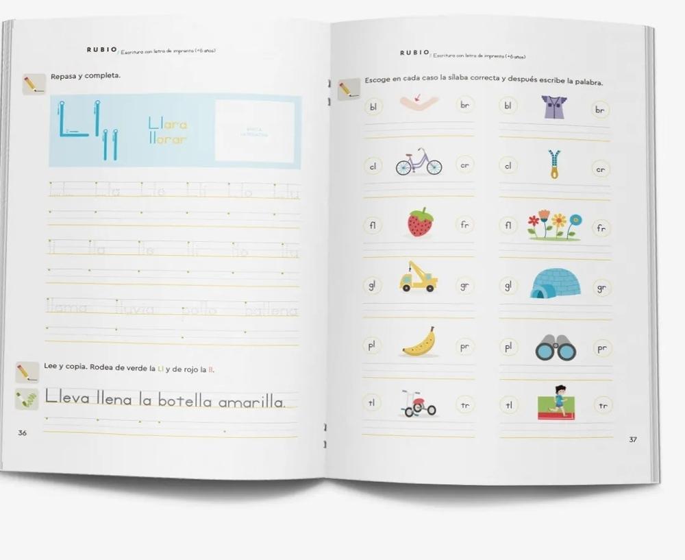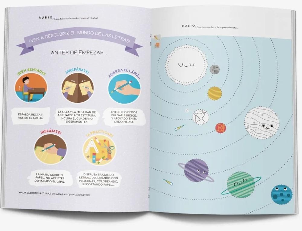 La colección Escritura con Letra de Imprenta RUBIO favorece, desde la etapa de infantil, el desarrollo de habilidades grafomotrices y de escritura atendiendo al nivel madurativo y evolutivo propio de cada edad.