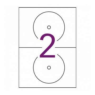 Etiquetas para CD/DVD en tamaño mega (Ext.: Ø 117 mm - Int.: Ø 18 mm) con adhesivo permanente y acabado brillante calidad foto. El tamaño mega proporciona una cobertura total de la superficie del CD. Cada pack contiene 10 hojas (20 etiquetas). Personaliza tu CD/DVD. Con estas etiquetas te será muy sencillo crear tus propios diseños y personalizar tu etiqueta dándole un aspecto auténtico y muy profesional. Excelente calidad de impresión en impresoras láser y fotocopiadoras.