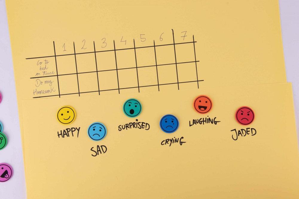 Cada emoción tiene un color para ayudar a su identificación, incluye 50 u. por color. Cada pack contiene 500 formas de Ø 3,5cm.