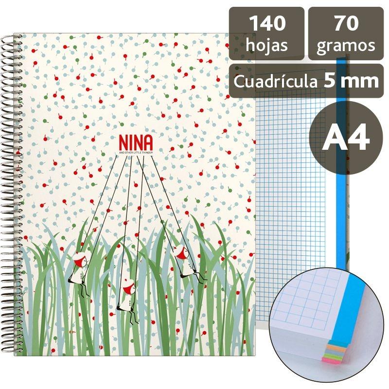 Cuaderno A4 de la colección Nina 20 Nature de Grafoplás, referencia 16502616 y EAN 8413623793495. Fabricado con tapa dura de cartón forrado y papel plastificado soft, ofrece una textura suave, resistente y muy agradable al tacto. Incluye 100 hojas de papel de 90 g con cuadrícula 5×5 mm, ideales para apuntes extensos, esquemas, cálculos y uso académico o profesional. Su certificación FSC® garantiza un producto más sostenible y respetuoso con el medio ambiente. Un cuaderno práctico, duradero y con un diseño natural y delicado, perfecto para quienes buscan funcionalidad y estética en su papelería diaria.