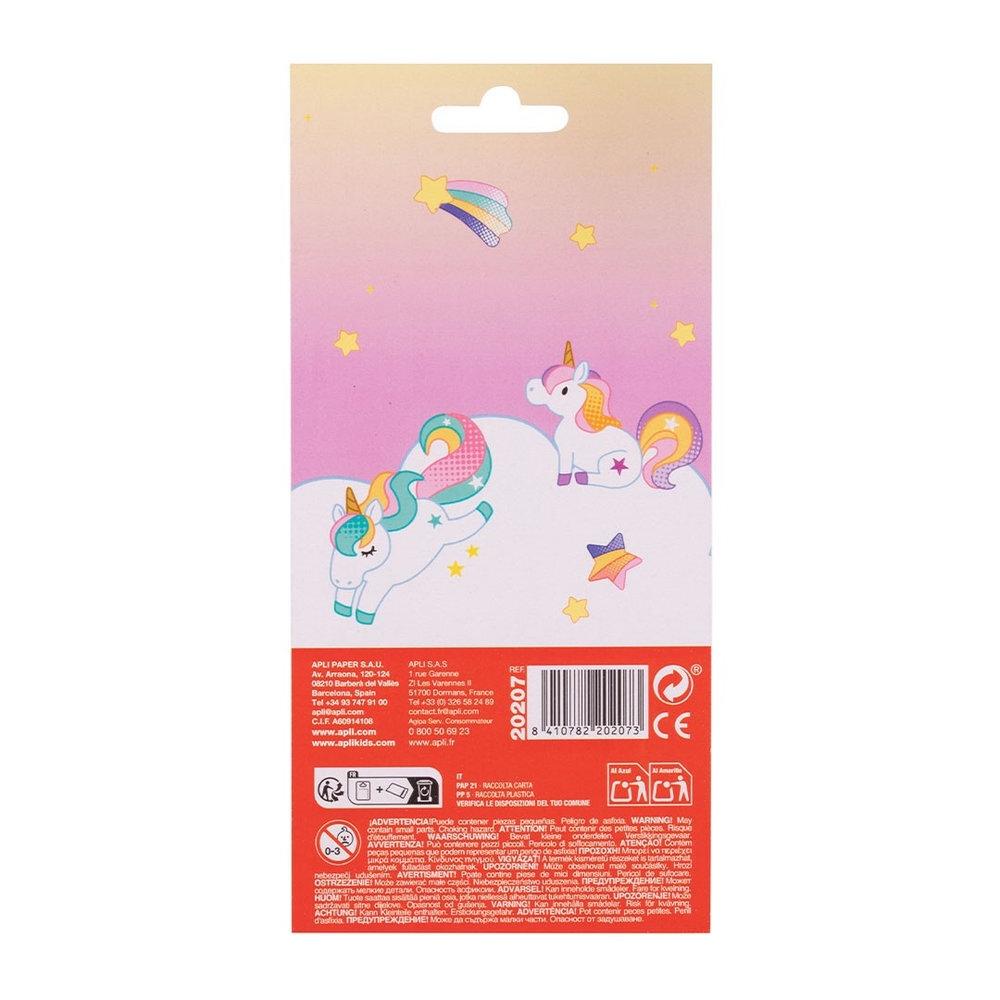 APLI 20207 Pegatinas Unicornios Puffy, una hoja con 28 pegatinas de unicornios en diferentes formas y tamaños, con efecto volumen tipo puffy y acabado suave al tacto. Adhesivo permanente, ideal para decorar álbumes, cartas, cuadernos, carpetas, invitaciones o proyectos de scrapbooking y manualidades. Un diseño encantador que estimula la imaginación, la creatividad, la motricidad fina y la capacidad narrativa de los más pequeños. Medidas del producto: 100 x 103 mm.