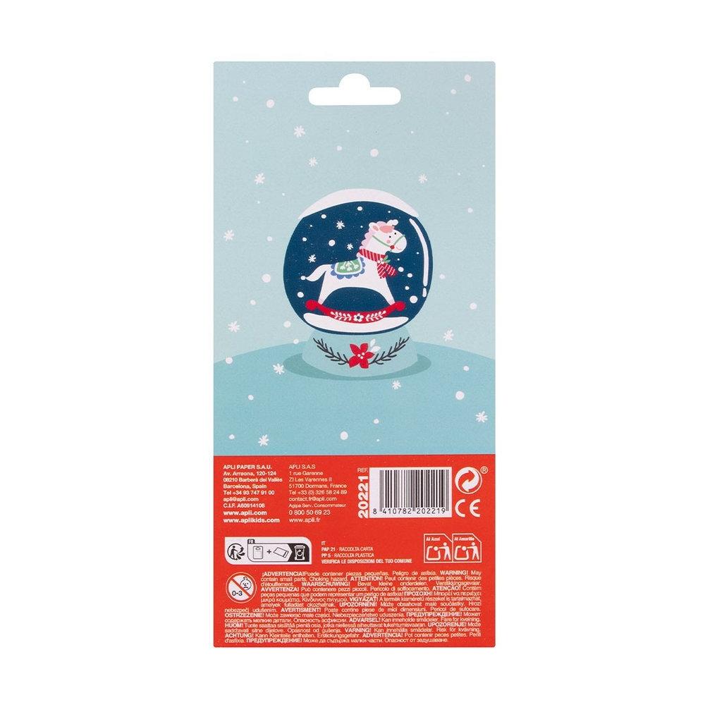 APLI 20221 Pegatinas Navidad Bola de Nieve, una hoja con 6 pegatinas inspiradas en las clásicas bolas de nieve navideñas: escenas invernales, muñecos de nieve, paisajes nevados, casas decoradas y personajes festivos. Adhesivo permanente, ideal para decorar tarjetas, álbumes, sobres, regalos, etiquetas y manualidades navideñas. Diseños llenos de encanto y detalles que evocan la magia del invierno, fomentando la creatividad, la motricidad fina y el juego imaginativo de los más pequeños. Medidas del producto: 100 x 203 mm.