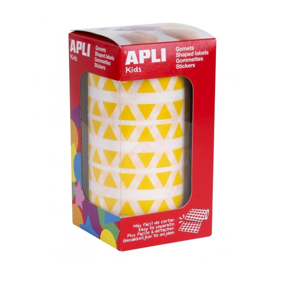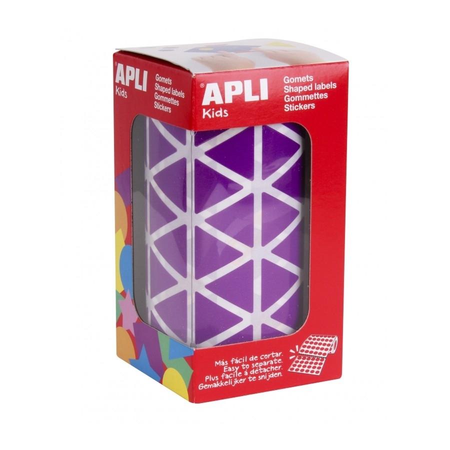 Gomets geométricos en rollo Apli triángulos.El formato perfecto para usar en escuelas, guarderías, talleres infantiles o cualquier otro colectivo que trate con niños. Jugar y crear con gomets es una actividad básica que permite desarrollar la psicomotricidad fina y trabajar, al mismo tiempo, varias capacidades y habilidades como el conocimiento de los colores, las formas geométricas y los tamaños; el desarrollo de la lógica y la creatividad; el trabajo en equipo o el dominio del espacio, entre otros.