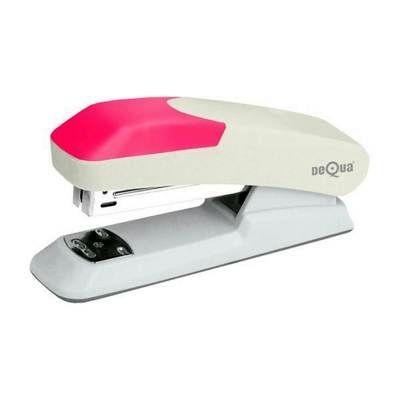 Grapadora Dequa 20h rosa La grapadora Dequa 040232 en color naranja es una herramienta resistente, compacta y práctica para el uso diario en oficinas, centros educativos y hogares. Con capacidad para grapar hasta 20 hojas, ofrece un rendimiento fiable y un diseño ergonómico que facilita su manejo. Su acabado en color naranja aporta un toque moderno y distintivo al material de escritorio.