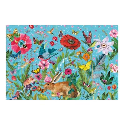 Puzle fluorescente "Glow in the dark" con temática de flores. Incluye 204 piezas tamaño 5 x 5 cm. Descubre la fauna y flora que habitan en este jardín. ¡Apaga la luz y podrás ver que algunos personajes cambian de posición y aparecen diseños ocultos! Importante: para "recargar" el efecto fluorescente, coloca el puzle bajo una fuente de luz durante al menos media hora.