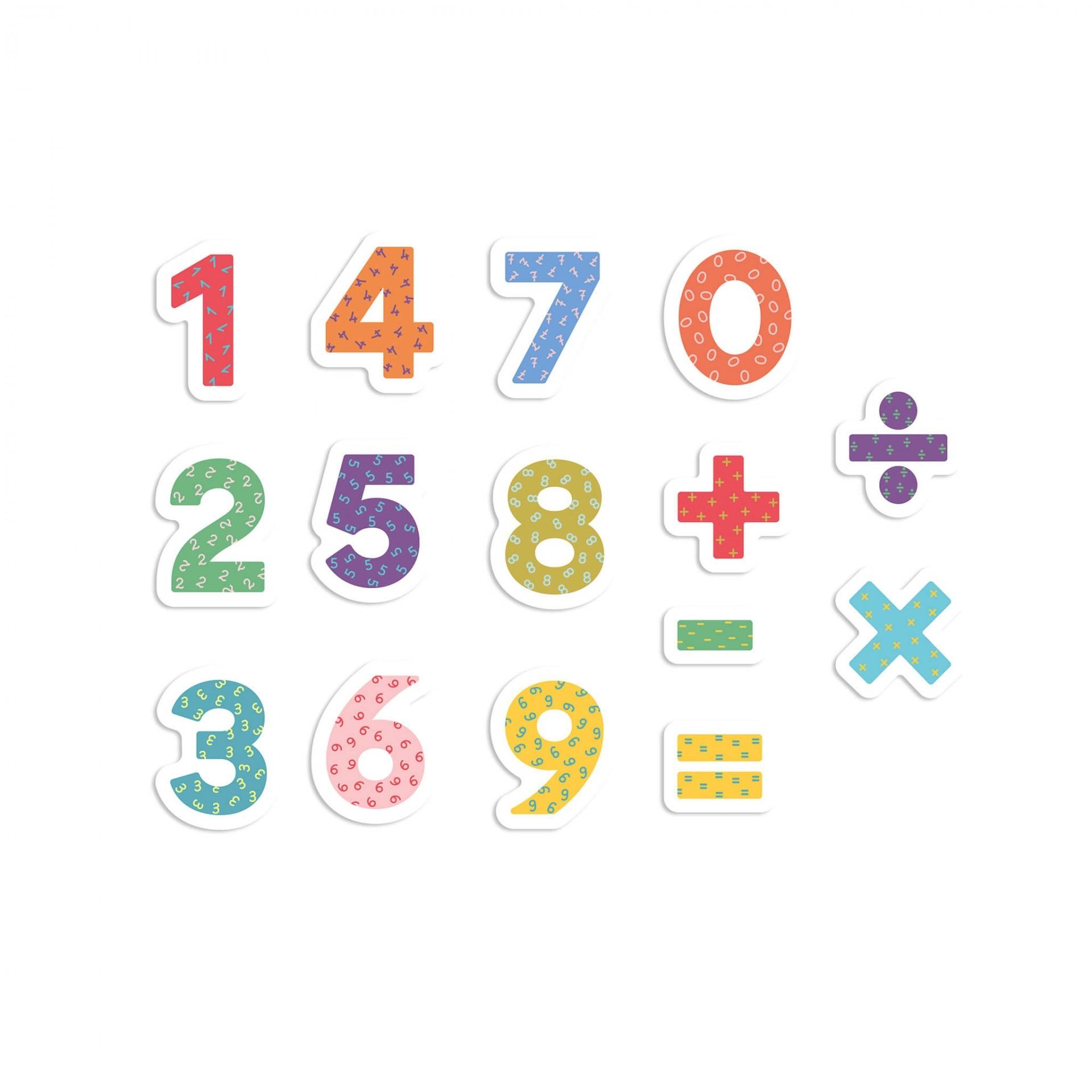 Juego magnético de 30 números y símbolos de madera de alta calidad con lámina magnética en el dorso.