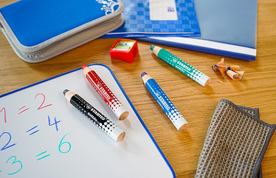 STABILO MARKdry es el primer lápiz para usar en pizarras blancas, tableros clásicos y cartones. Es muy fácil de borrar con un paño seco o húmedo sin dejar rastro. En cartones no penetra el papel.