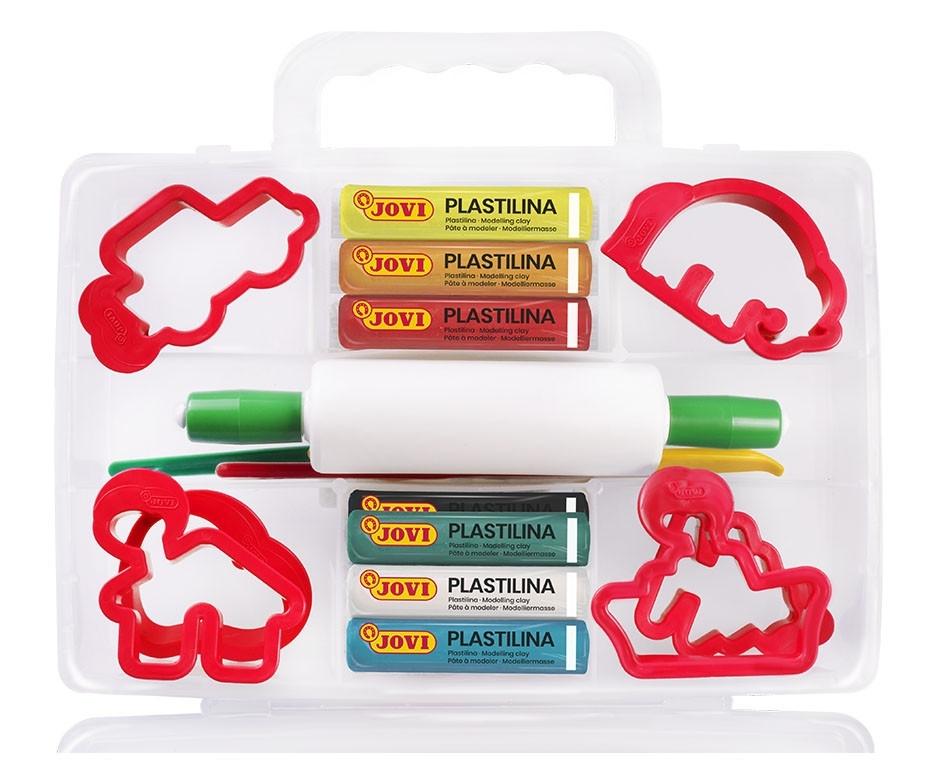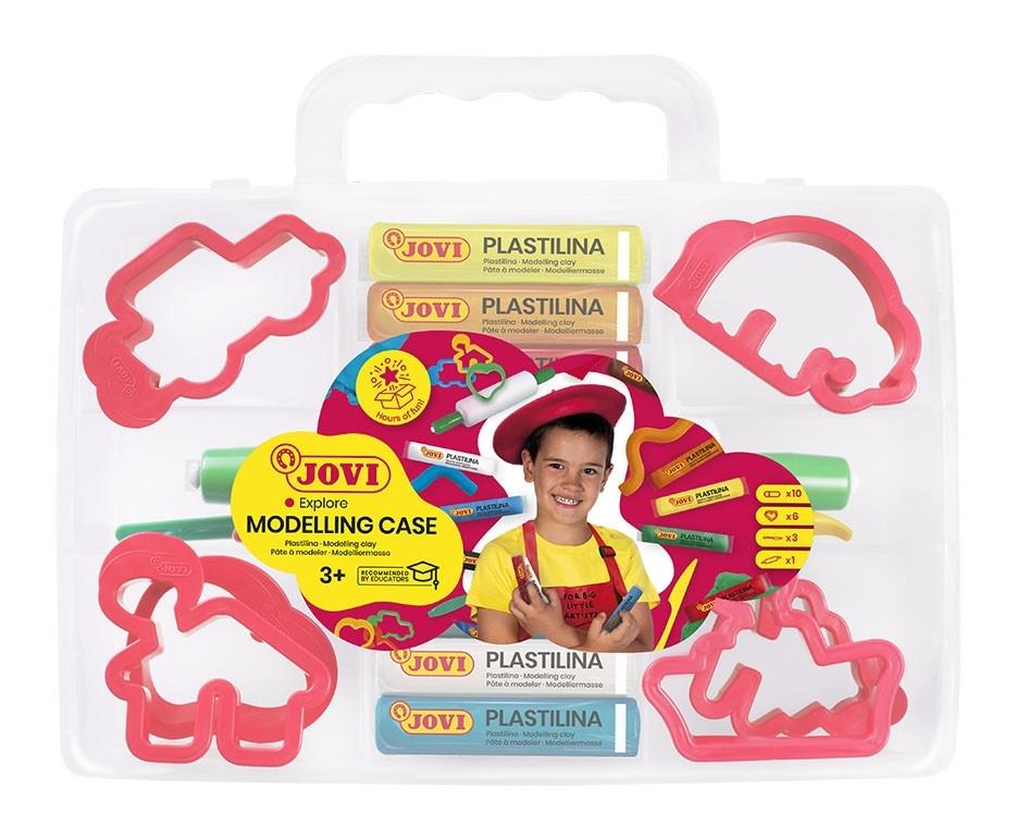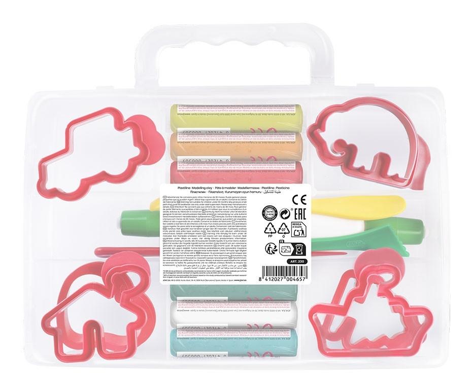 MODELLING CASE Set 10 pastillas de plastilina 15 gr + 6 moldes +3 modeladores + 1 rodillo