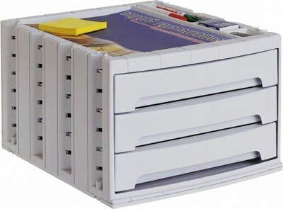 Con 3 cajones grandes y carcasa en color gris. 370x305x215mm