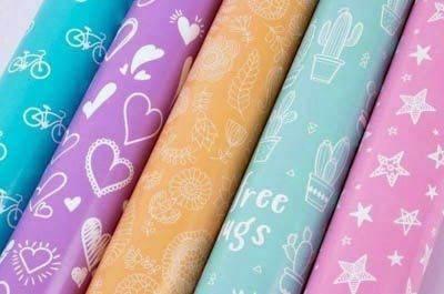Expositor de rollos de papel regalo modelo Nordik Fun. Cada expositor contiene 55 rollos en 5 diseños surtidos (11 rollos por diseño). Cada rollo mide 0,7 x 2 m. Diseños exclusivos: bicicleta turquesa, corazones violeta, cactus aguamarina, flores mostaza, estrellas rosa. Papel regalo de alta calidad, que no transparenta y con diseños coloridos y actuales. El papel ideal para cualquier ocasión.