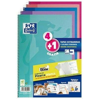 Paq.4+1 cuadernos Oxford tapa extradura 80h 90g cuadrícula 4x4 folio colores tendencia