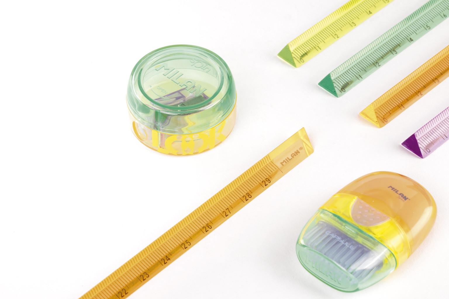 Regla triangular de la colección New Look, disponible en 4 colores (Rojo, Verde, Lila y Lima).
