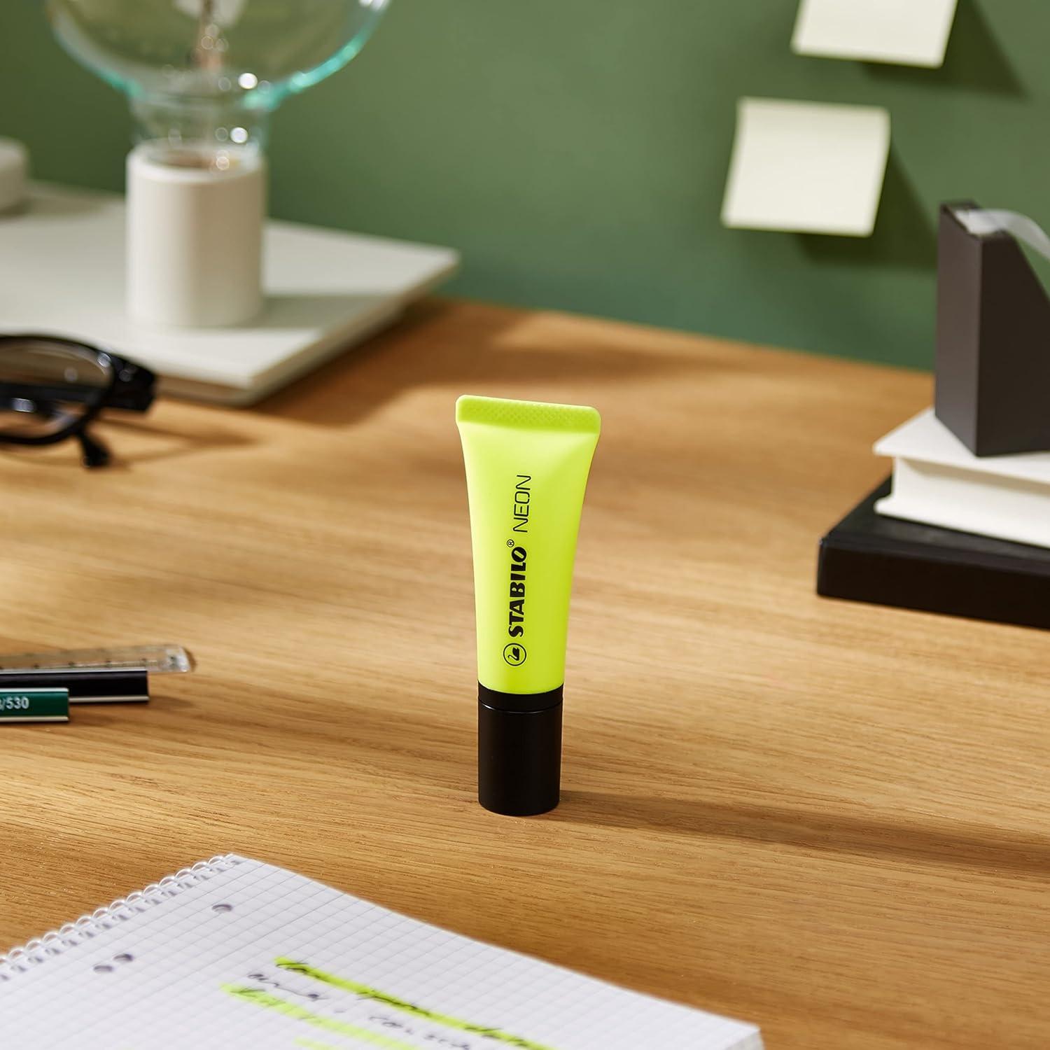 El STABILO NEON es todo menos aburrido - sus 5 colores vienen en su nuevo diseño de tubo que los hace divertidos y fáciles de agarrar. ¡Serán la envidia de tus compañeros! Además tienen el estándar de calidad STABILO. Gracias a su tecnología antisecado, el STABILO NEON puede estar sin tapón hasta 4 horas. ¡Hazte con todos los colores!¡Tienes 5 para escoger! Prueba su superficie blanda de sujeción y ¡no los dejes escapar! Características del producto: