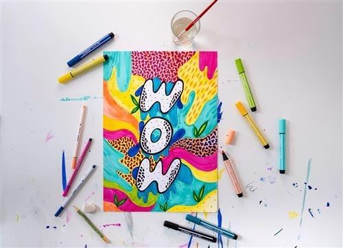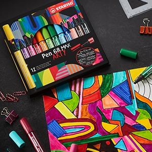 Tanto los artistas aficionados como los profesionales creativos aprecian la amplia gama de posibilidades que ofrece el STABILO Pen 68 MAX: colorear, dibujar, crear patrones abstractos, rotular a mano, escribir un diario y mucho más. La tinta a base de agua hace que la creación de obras de arte con impresionantes efectos de acuarela sea muy sencilla. Gracias a su protección contra secado de 12 horas, el STABILO Pen 68 MAX no tiene límites de tiempo para ningún proyecto creativo.