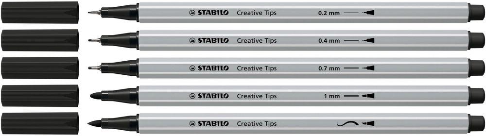 Las STABILO Creative Tips ofrecen una selección premium de rotuladores con cinco puntas de alta calidad con diferentes anchos de línea para trazos y estilos versátiles. Ideal para mentes creativas que quieren expresarse utilizando puntas de diferentes tamaños y para todos los que aman la creatividad en colores sobre papel.