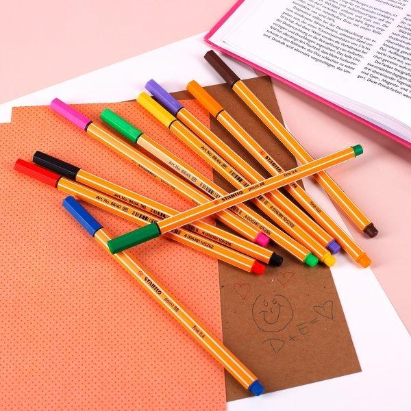 Estudiar puede ser estresante, hay mucho que aprender sobre muchos temas y materias diferentes. ¡Hay que hacerlo! pero es más fácil decirlo que hacerlo. Hay algunas cosas sencillas que puedes probar para facilitar el estudio. El STABILO point 88 es el punta fina perfecto para crear notas, con una escritura ordenada, subrayando, creando pequeños bocetos y está disponible en 65 colores.