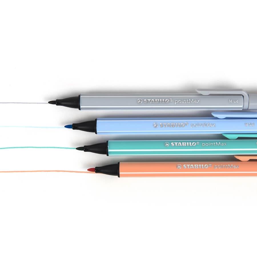 Diseñado con el máximo cuidado para que puedas escribir con la máxima comodidad. Además de estar disponible en 24 colores, STABILO pointMax viene con un práctico clip para que siempre esté contigo. Además, se puede dejar sin tapar hasta 24 horas sin comprometer la integridad de la tinta y la punta. Lo que realmente hace que el STABILO pointMax sea tan especial es su punta de nailon única y robusta. Diseñado específicamente para crear un ancho de línea de 0,8 mm, es ideal para tareas cotidianas y para garantizar eficiencia, finura y visibilidad.