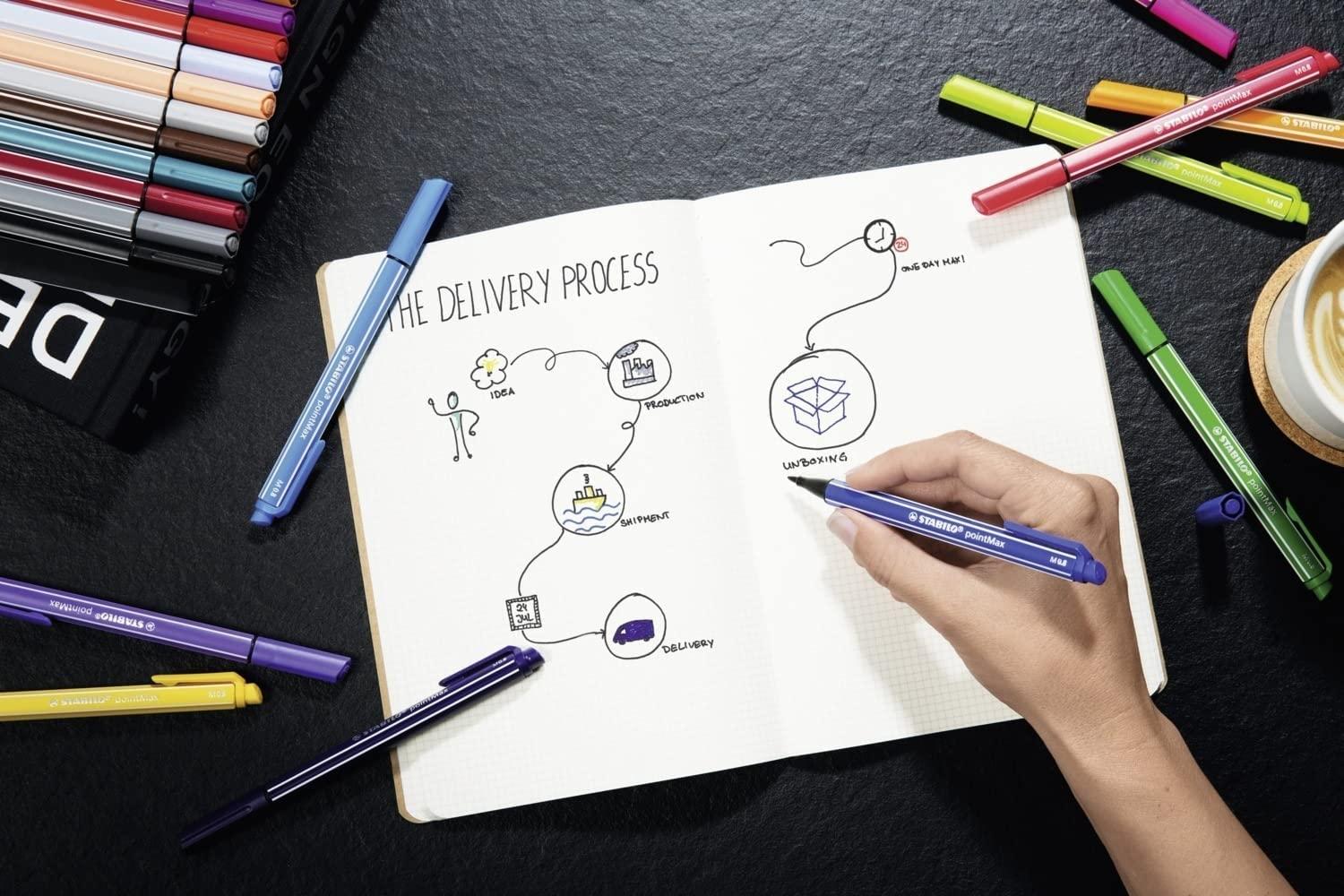 Diseñado con el máximo cuidado para que puedas escribir con la máxima comodidad. Además de estar disponible en 24 colores, STABILO pointMax viene con un práctico clip para que siempre esté contigo. Además, se puede dejar sin tapar hasta 24 horas sin comprometer la integridad de la tinta y la punta. Lo que realmente hace que el STABILO pointMax sea tan especial es su punta de nailon única y robusta. Diseñado específicamente para crear un ancho de línea de 0,8 mm, es ideal para tareas cotidianas y para garantizar eficiencia, finura y visibilidad.